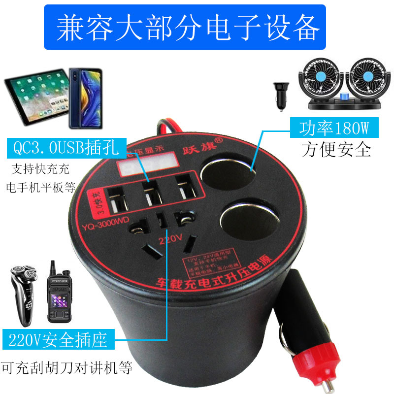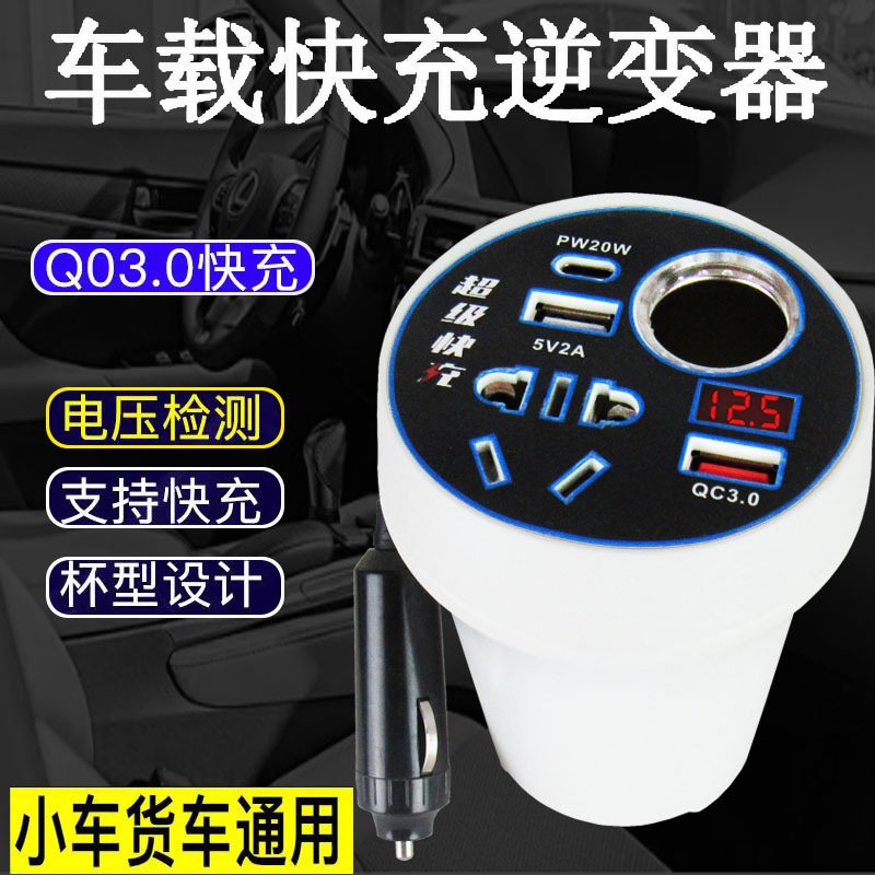 車載インバーター12v 24v 220v電源変換器多機能自動車トラック通用スマート充電器