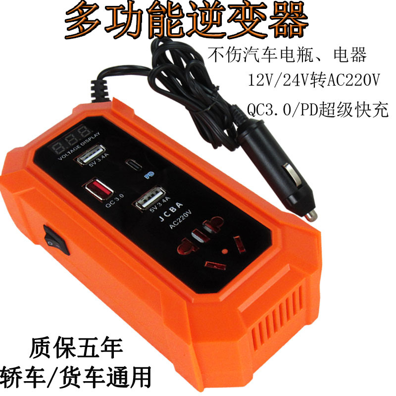 車載インバーター12v 24v 220v電源変換器多機能自動車トラック通用スマート充電器