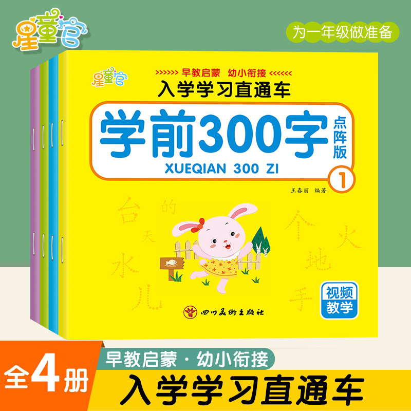 就学前の300単語、幼児の接続開発トレーニング用の赤い線を描くための4冊、幼児用ドットマトリックスカラー漢字模写練習用コピーブック