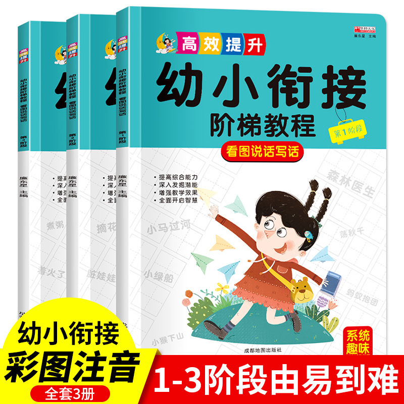 幼児向けステップバイステップチュートリアル、絵を見て話したり書いたりする、0~6歳の幼児向けの就学前教育啓発本3冊の完全セット