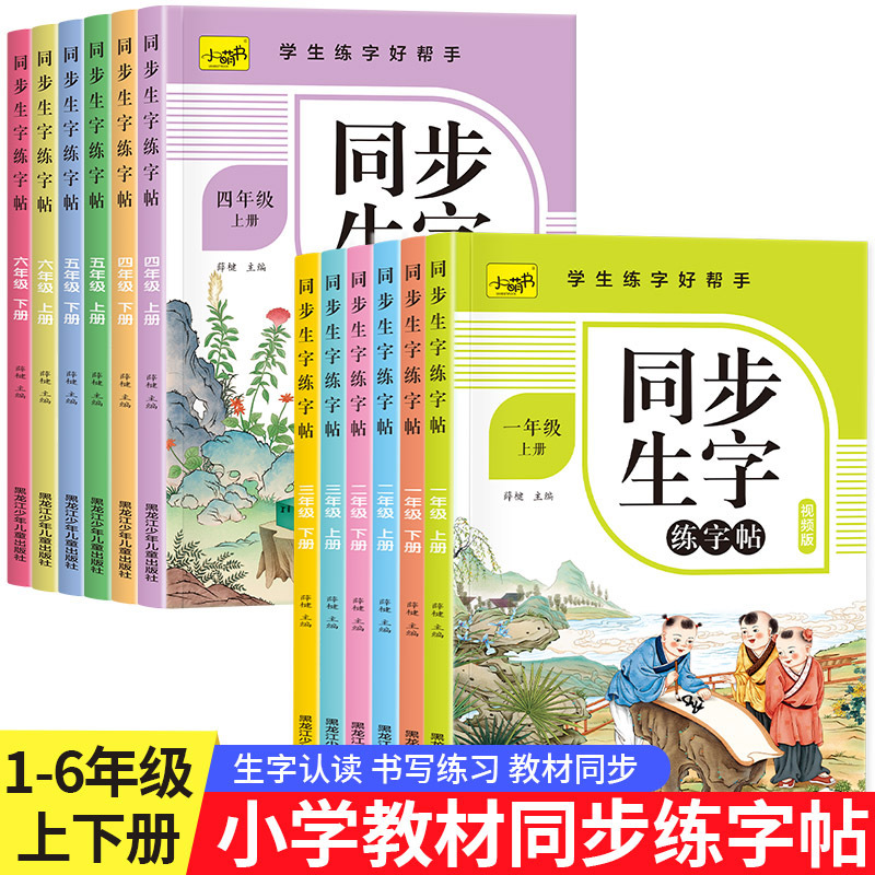 1~6年生用、人民教育出版社版楷書中国語教科書と連動した習字練習帳(1~6年生)