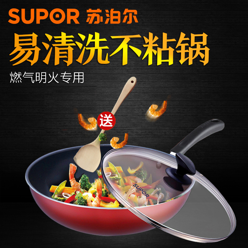 蘇泊爾suporは鍋のフライパンの家庭用炒め鍋32cmガスコンロの火専用鍋にくっつかない