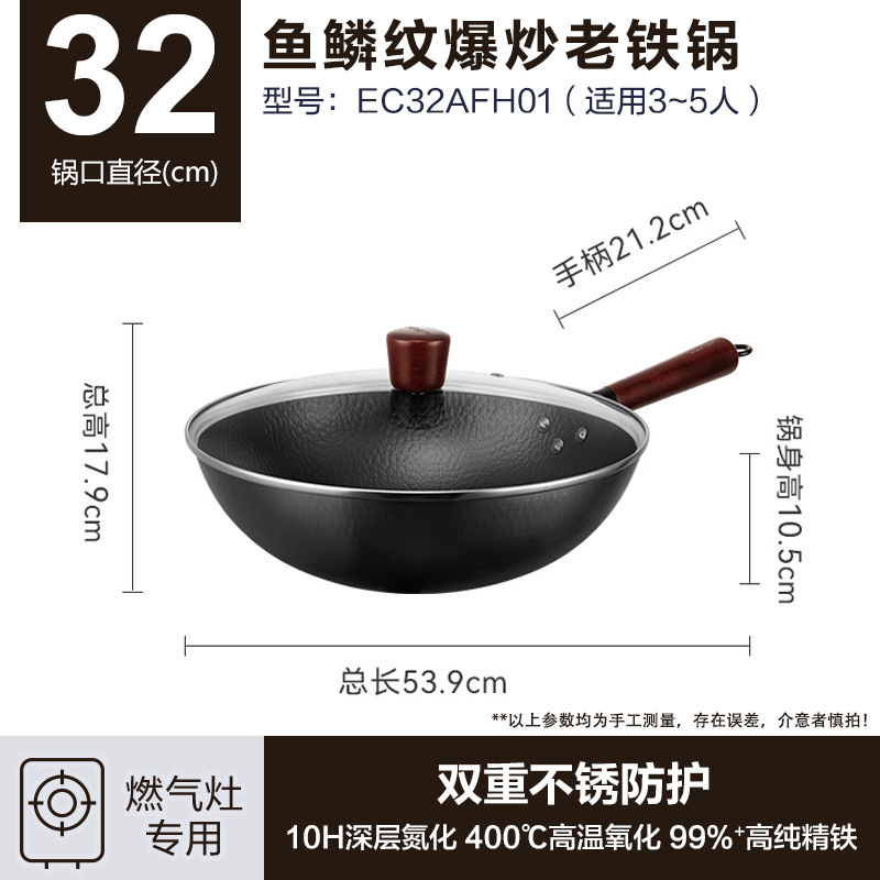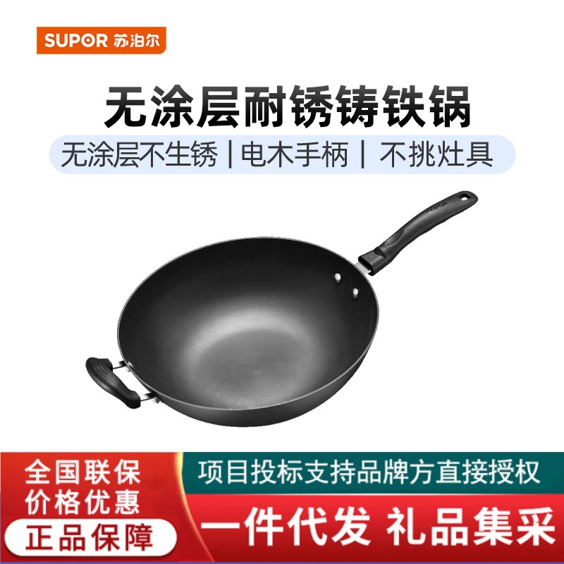 Supor 無塗装鋳鉄中華鍋 昔ながらの鋳鉄鍋 家庭用中華鍋 32cm/FC32E15 蓋なし