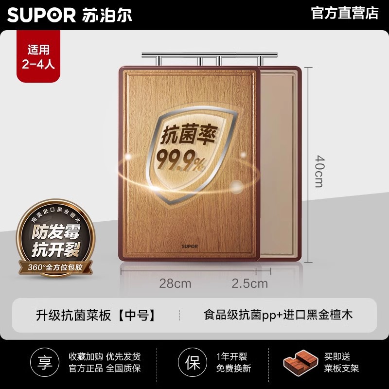 蘇泊爾 (SUPOR) 黒金檀木整木まな板厚肉まな板BF402825AH1