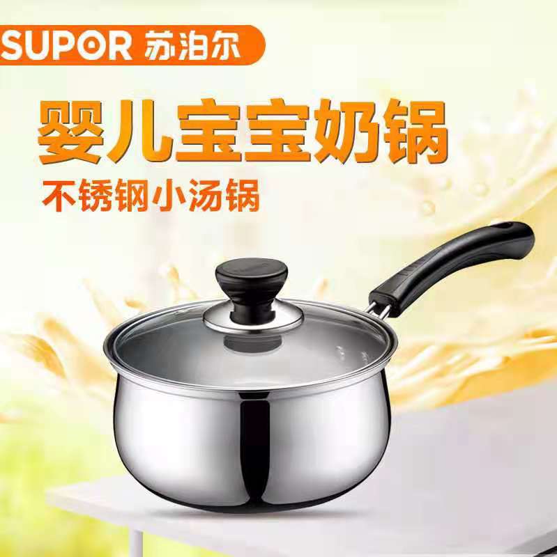 Supor 304ステンレス製ミルクポット、インスタントラーメン鍋、小型鍋、温かい牛乳を沸かす鍋、離乳食鍋、健康的な無塗装