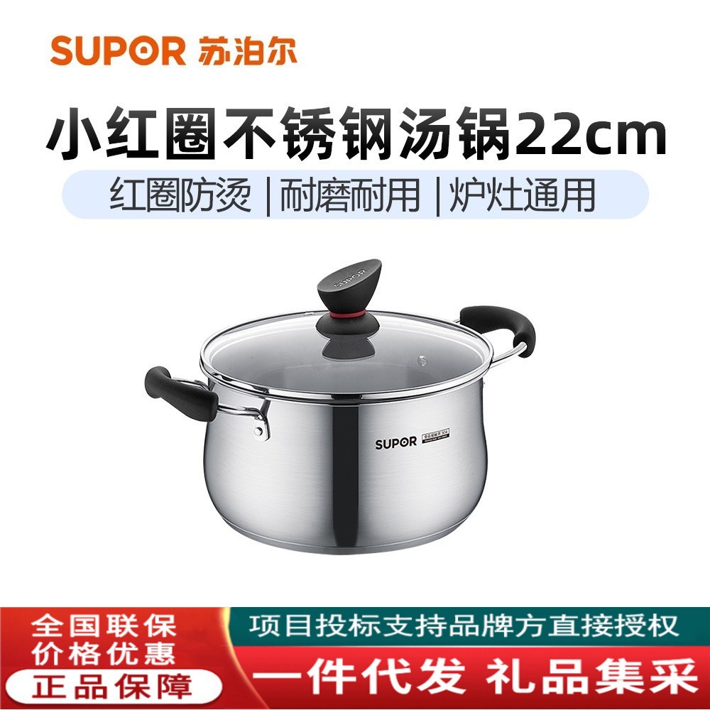 蘇泊爾精緻小紅圏304ステンレススープ鍋電磁炉ガス通用鼓型深スープ鍋st22z 1