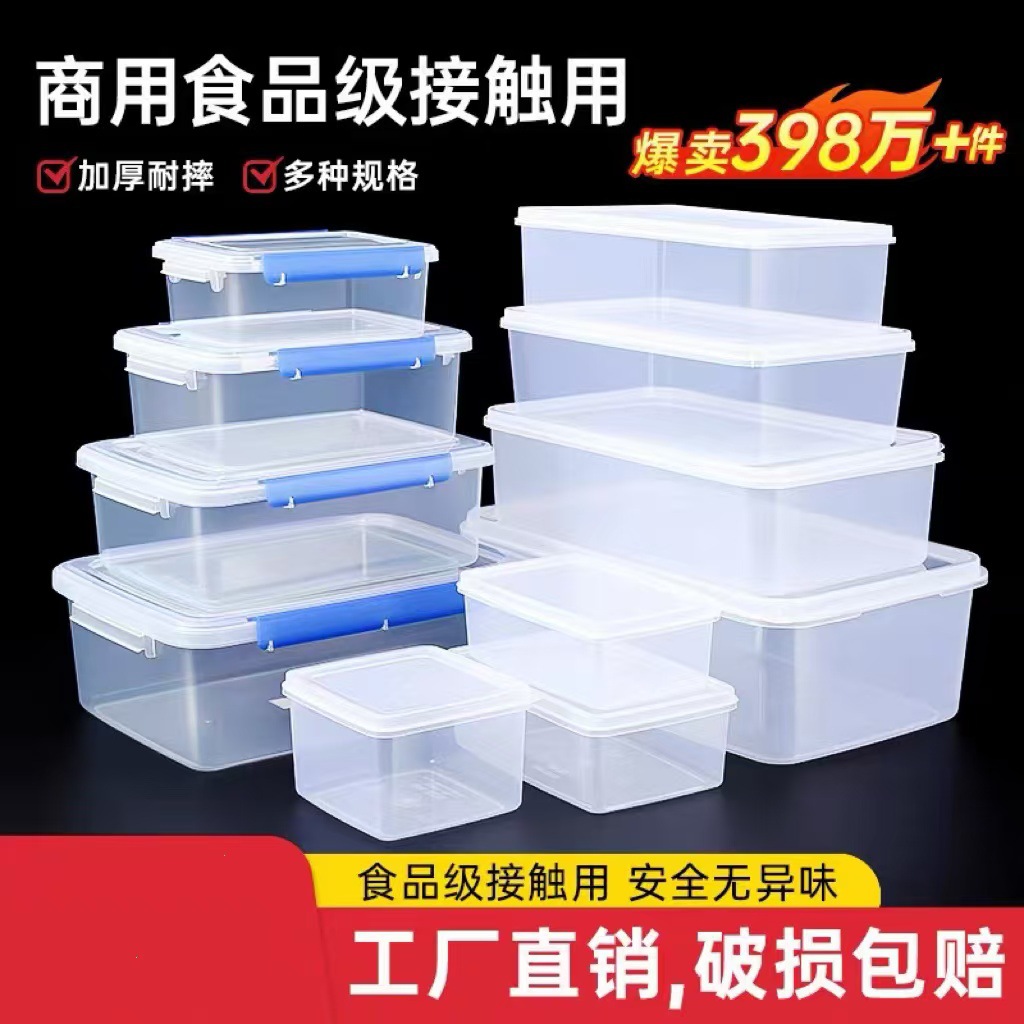 長方形鮮度保持ボックス透明プラスチックボックス冷蔵庫専用冷蔵シール食品級収納ボックス業務用蓋付き
