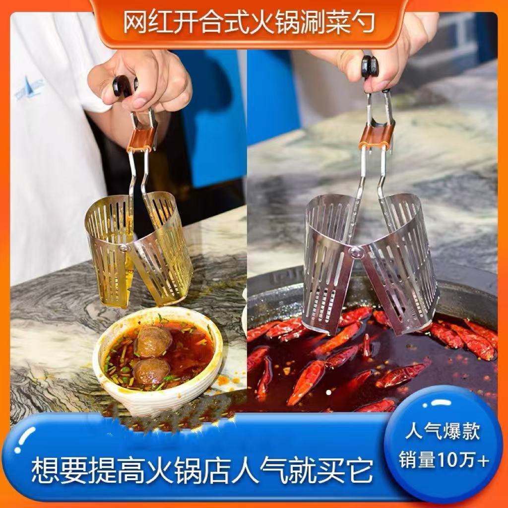 開合式鍋漏れスプーン304ステンレス煮脳花神器しゃぶしゃぶ業務創意帯フック豚脳スプーン