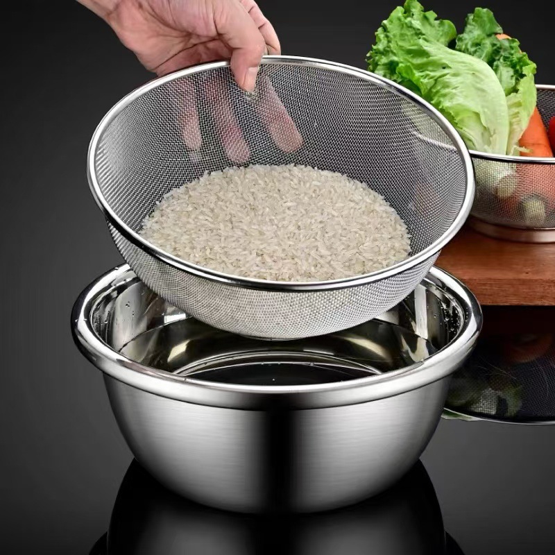 ステンレスの厚い密な穴の水たまりのかごを洗って野菜のたらいの漏れのたらいの家庭用の米のたらいを洗って米のふるいを洗って野菜のかごの果物のかごを洗います。