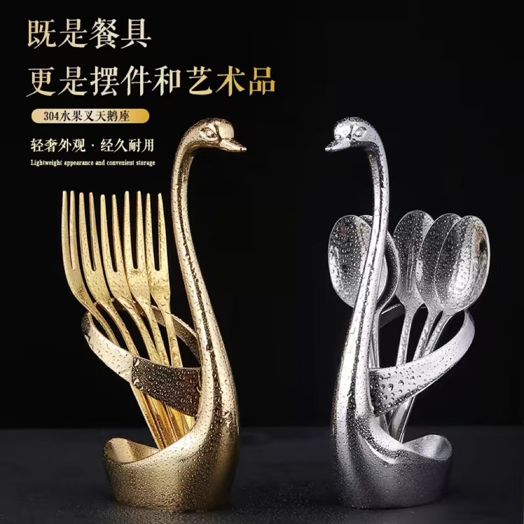 304ステンレススチール白鳥座フルーツフォークセットケーキデザートフォーク食器子供クリエイティブかわいいフォーク家庭用