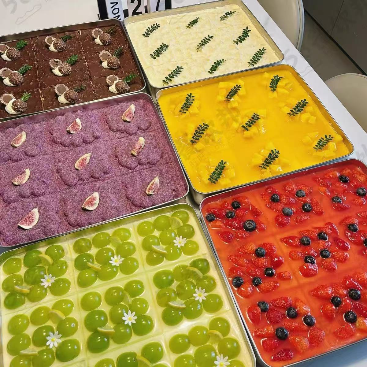 ステンレスティラミスアイスパレット器箱長方形専用角皿ネット赤ケーキ容器皿
