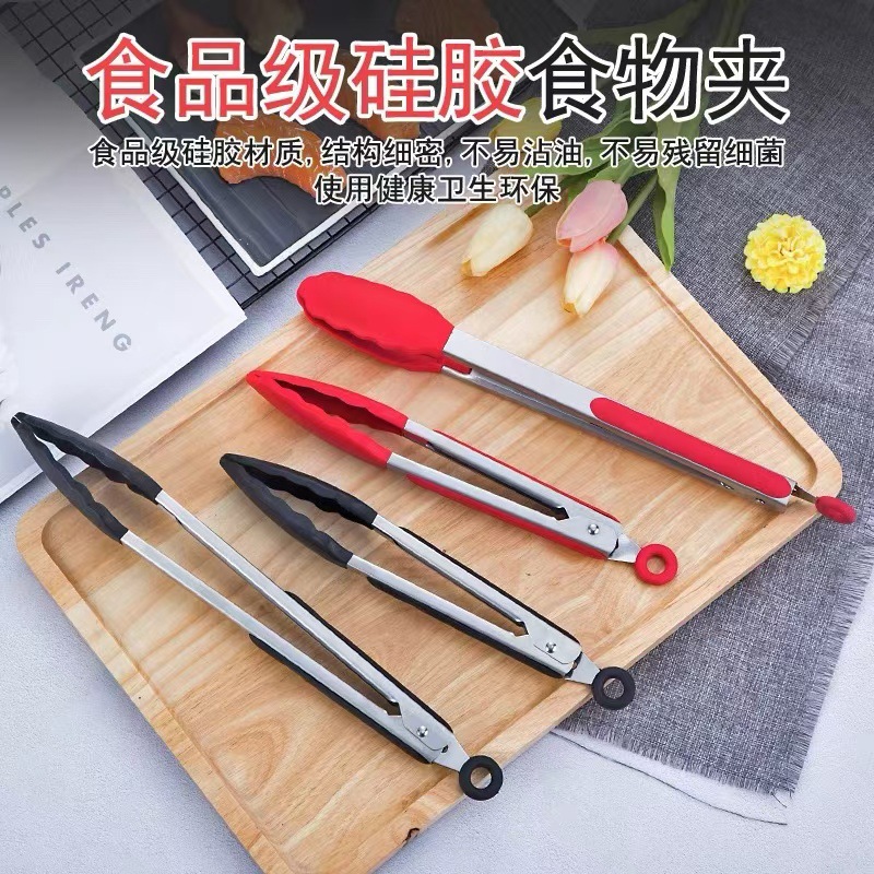 ステンレス食品級シリコンクリップ熱防止高温食品揚げ焼きステーキ炒め物専用食品クリップ