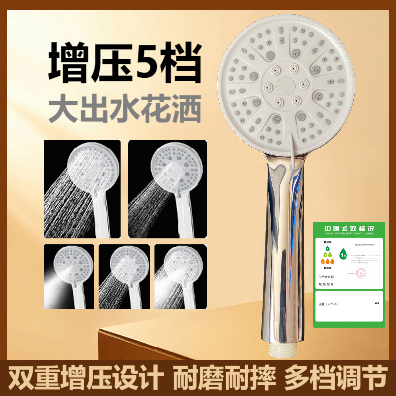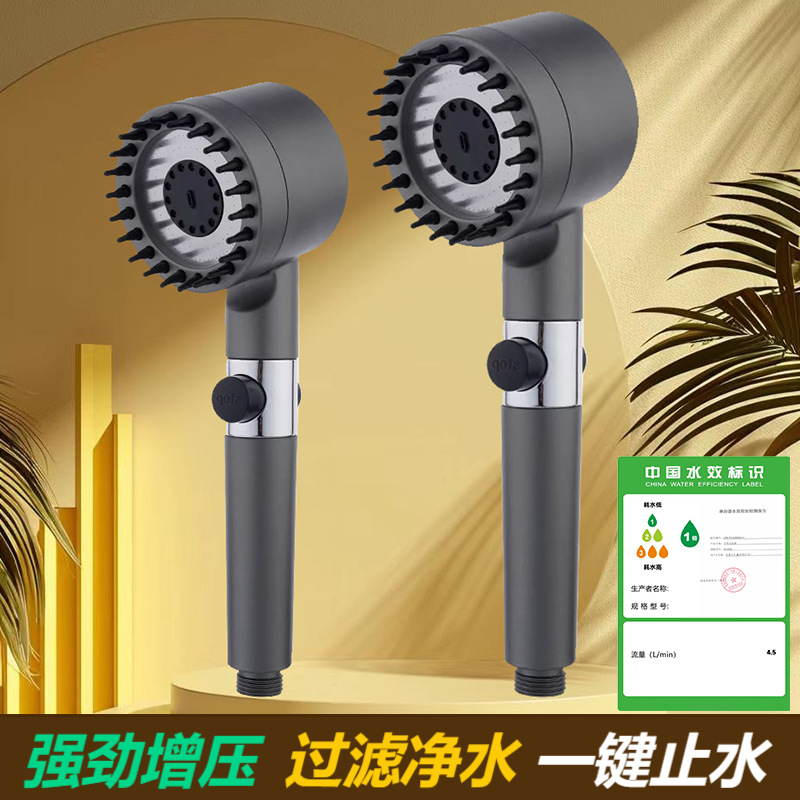 グレー五段一ボタン止水フィルタシャワー増圧ノズル家庭用シャワー給湯器入浴手スプレー
