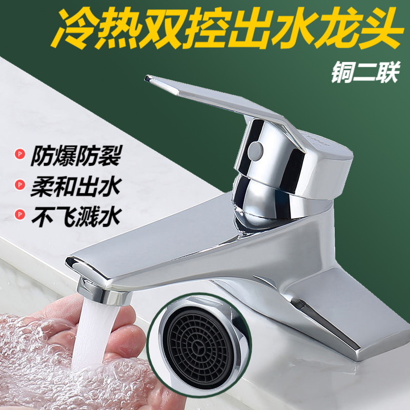 銅アイエルツ二連家庭用ウォータードラゴン冷水お湯ダブル用二穴二穴洗面器蛇口トイレ洗面器ヘッド