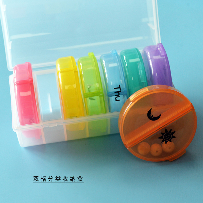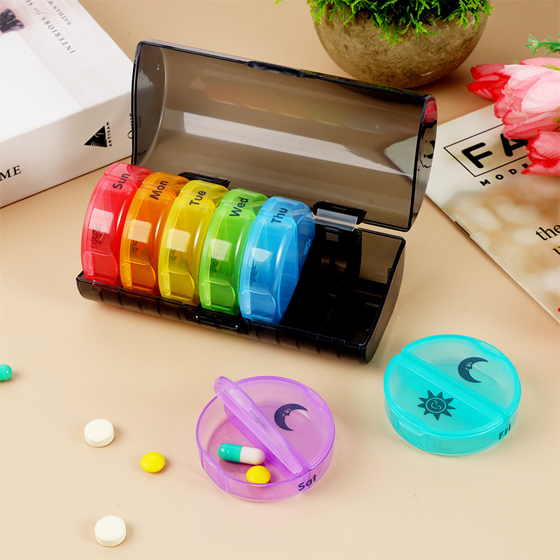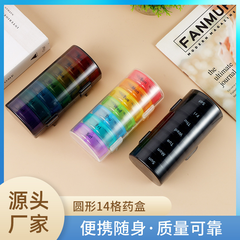 新型大容量7日間14格虹円形薬箱家庭用薬品収納箱携帯分注薬箱卸売り