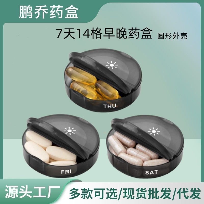 7日間の円形ミニ旅行防湿14格薬箱携帯は1週間の朝晩に分けてプラスチック薬箱を入れることができる