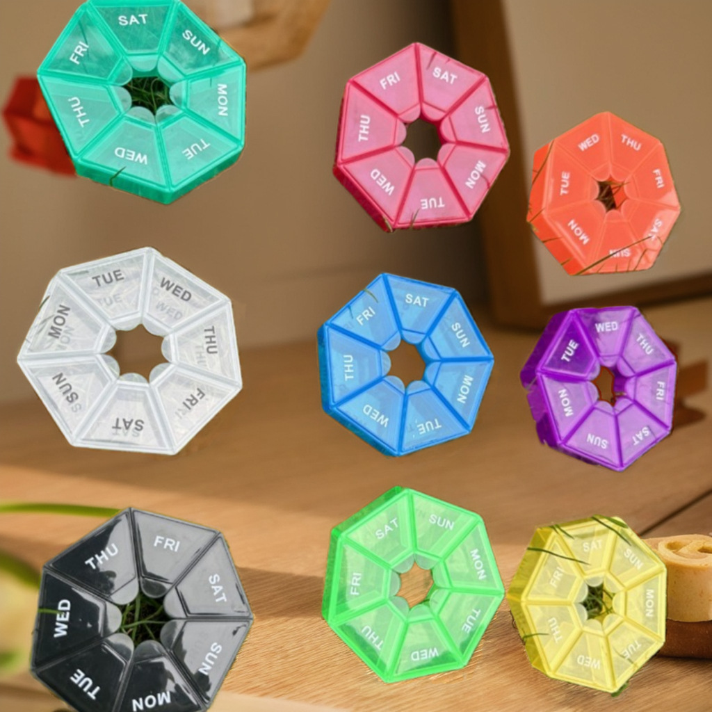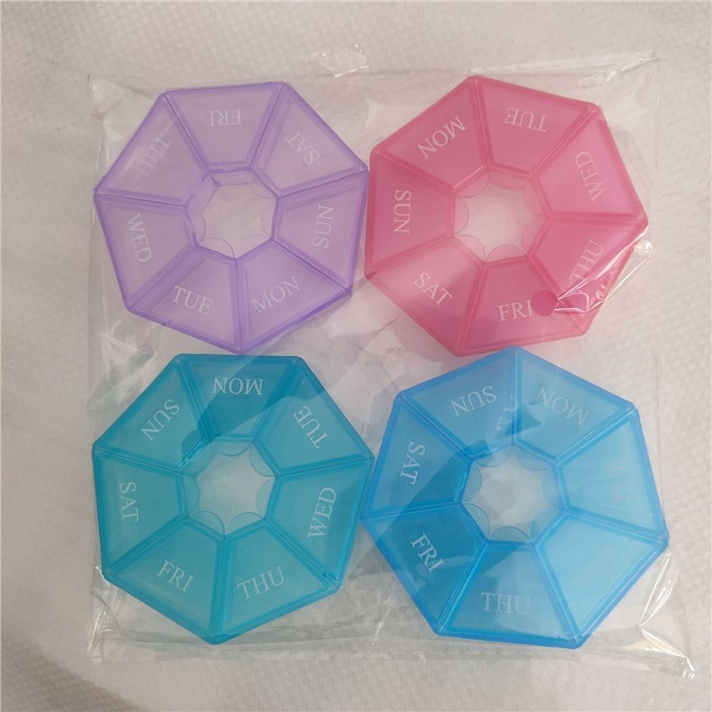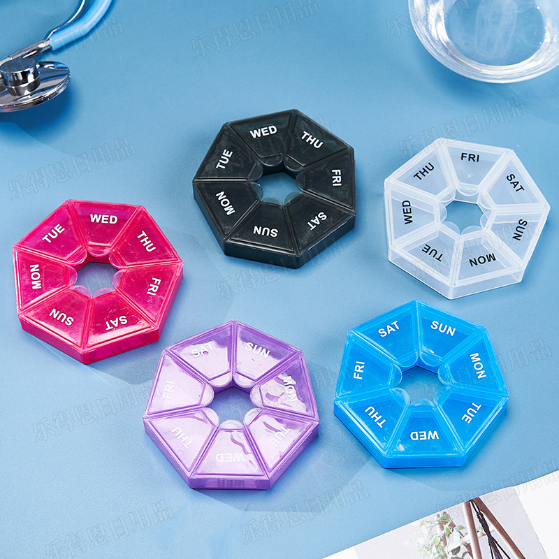 1週間7角薬箱円形7格は1週間分装小薬箱ミニ7日間携帯分薬アクセサリー箱