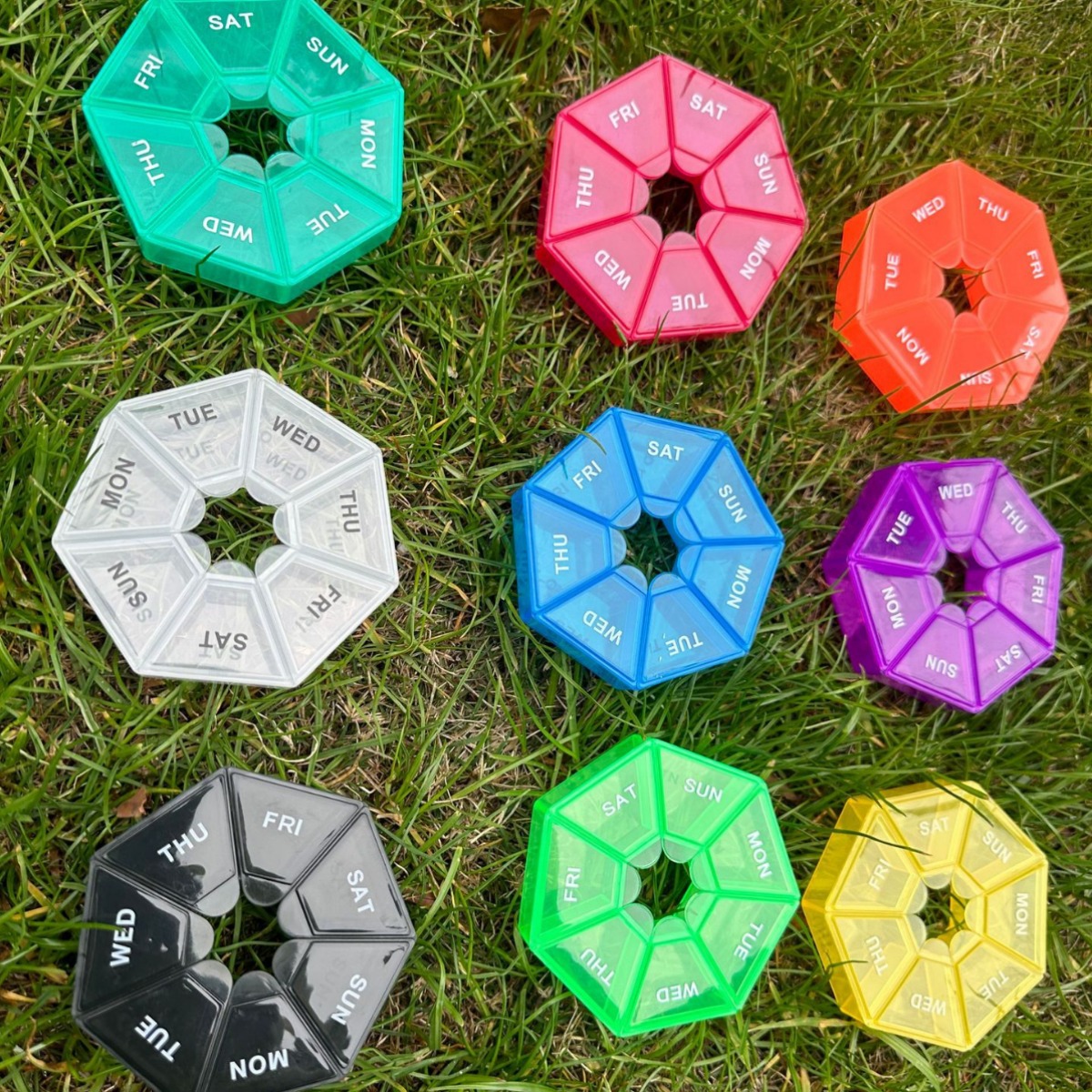 1週間7角薬箱円形7格は1週間分装小薬箱ミニ7日間携帯分薬アクセサリー箱