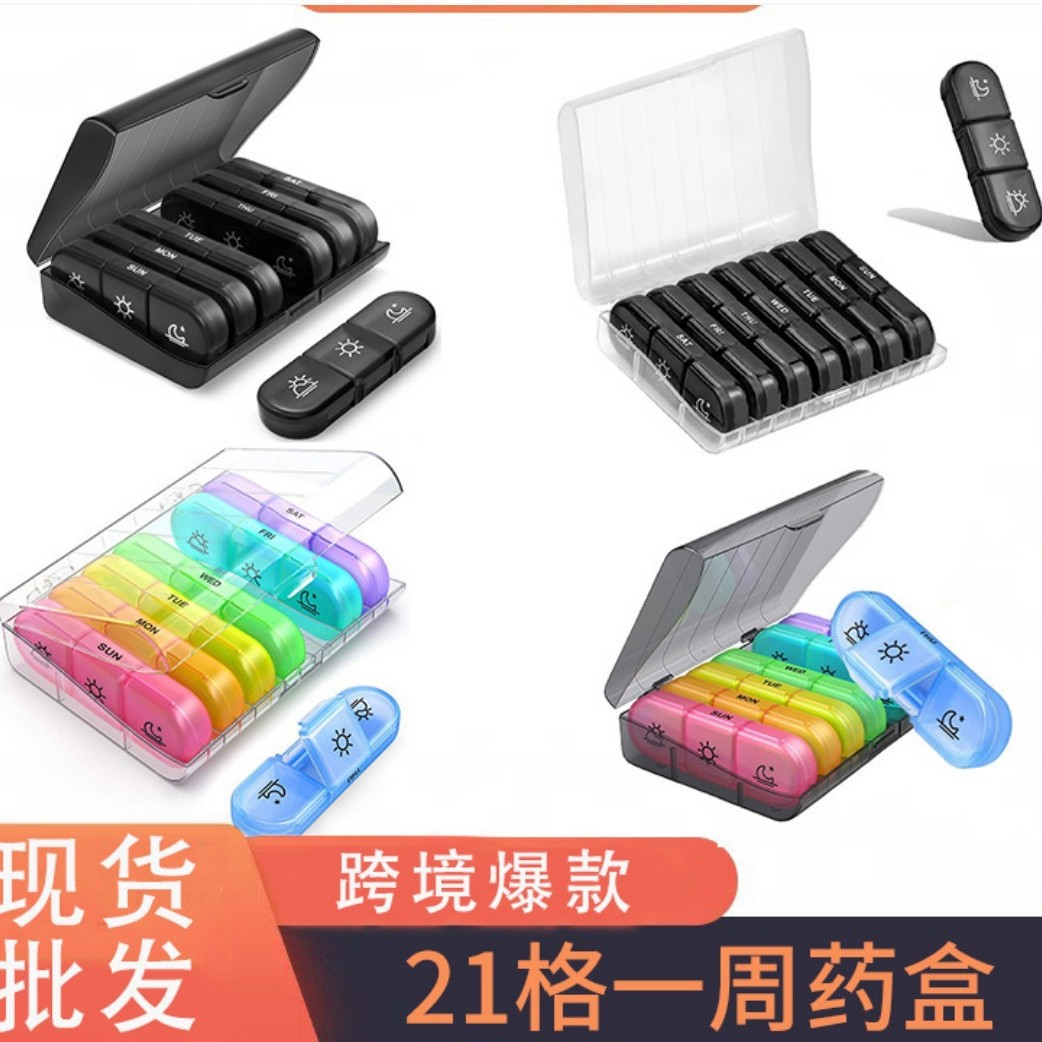 Amazonの人気のウィークリータブレットストレージ耐光ピルボックス7日間21コンパートメントポータブル旅行大容量ピルボックス