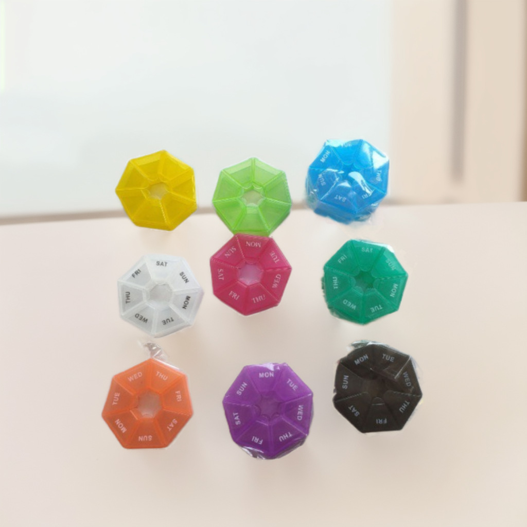 一星期7角药盒圆形7格随身一周分装小药盒 迷你7天便携分药饰品盒