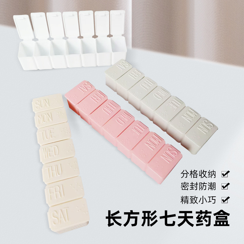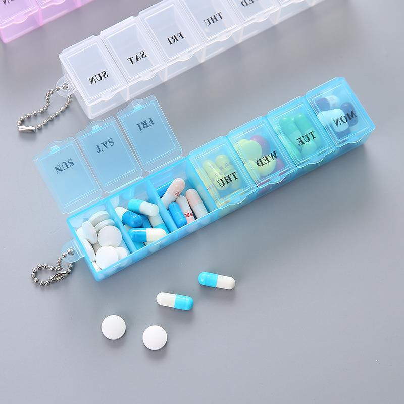 ポータブル分注7格薬箱週7日長方形小薬箱家庭用錠剤ミニ錠剤プラスチック分注箱