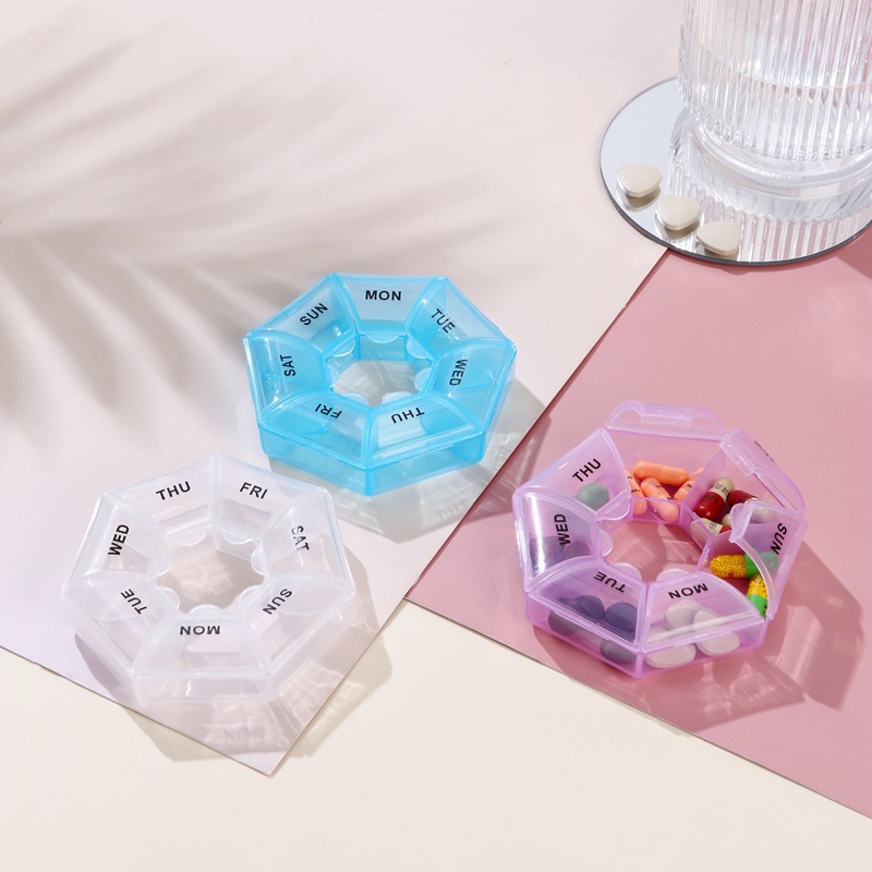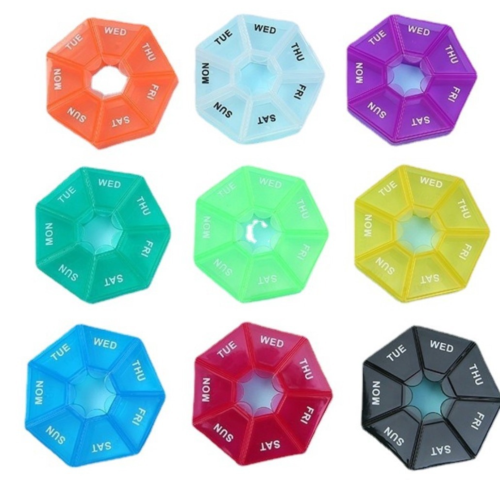1週間7角薬箱円形7格は1週間分装小薬箱ミニ7日間携帯分薬アクセサリー箱