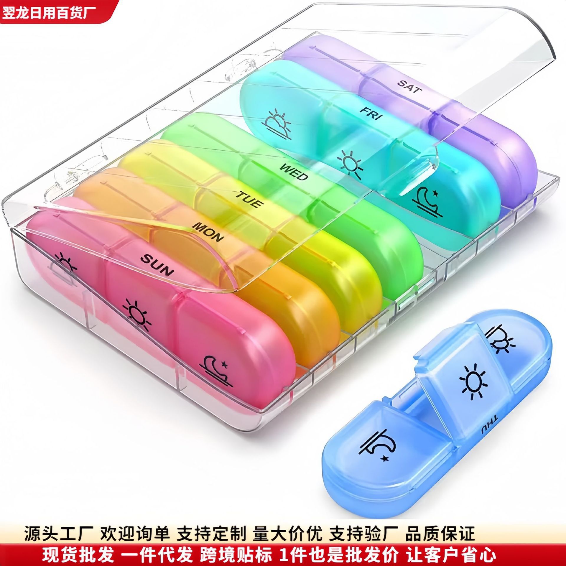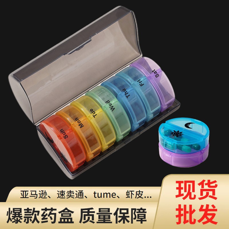 国境を越えた電気商tumeは7日間14格朝晩薬箱便利式ppプラスチック毎日2回円形薬箱を販売した