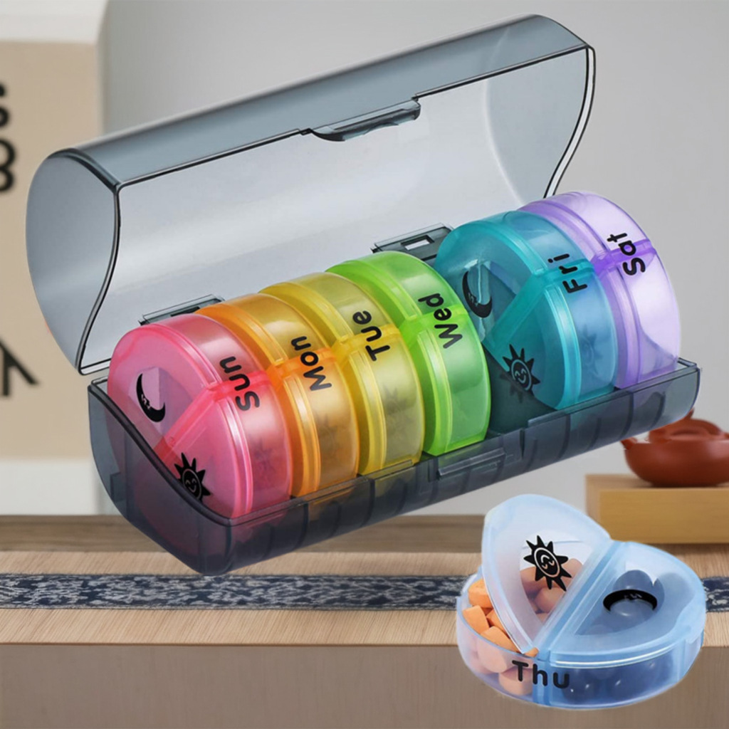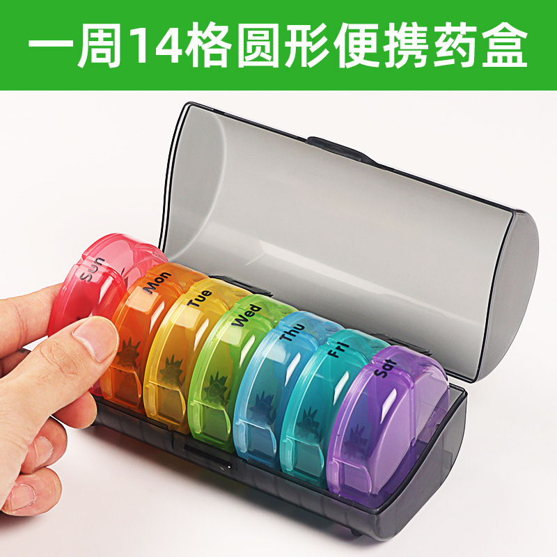 円形薬箱七日防湿14格トランペット携帯一週間朝晩薬整理収納薬箱分注箱