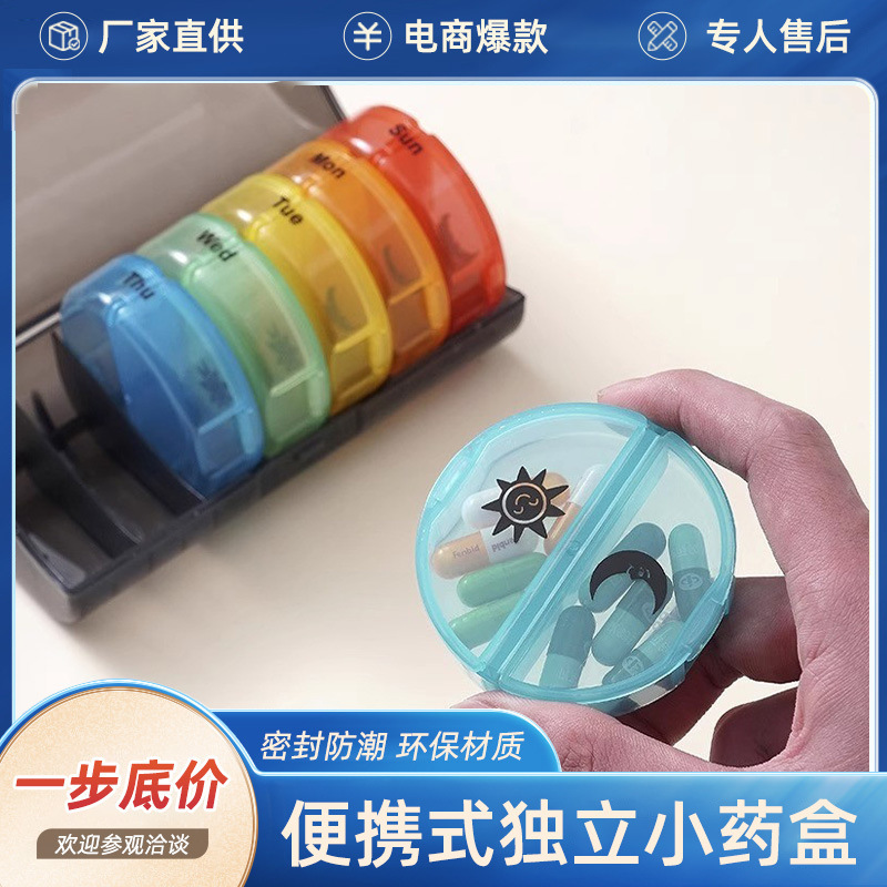 現物一週間薬箱七格円形錠剤収納箱携帯用小薬箱七角薬箱