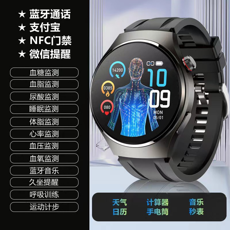 Watch4 血糖値、血中脂質、尿酸スマートウォッチ Alipay NFC Bluetooth 通話心拍数血圧血中酸素ウォッチ