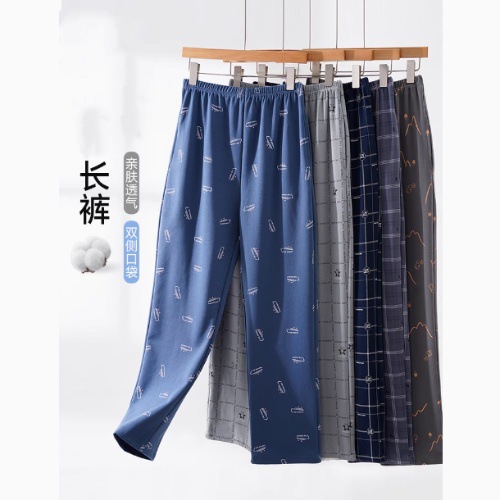 寝ズボン男性春秋タイプのズボン2024新型純綿双袋春秋ゆるい大サイズの家庭ズボン