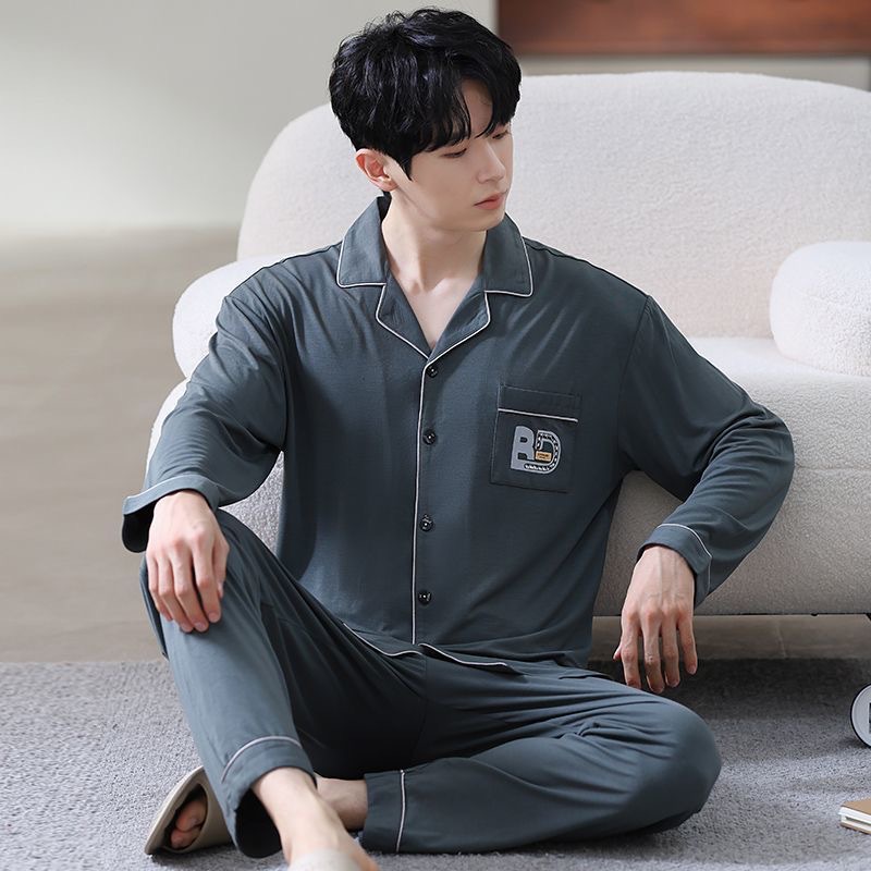 メンズパジャマ純綿ゆったり長袖ホームウェアセットソフト春秋新作シンプル青年ホームウェア