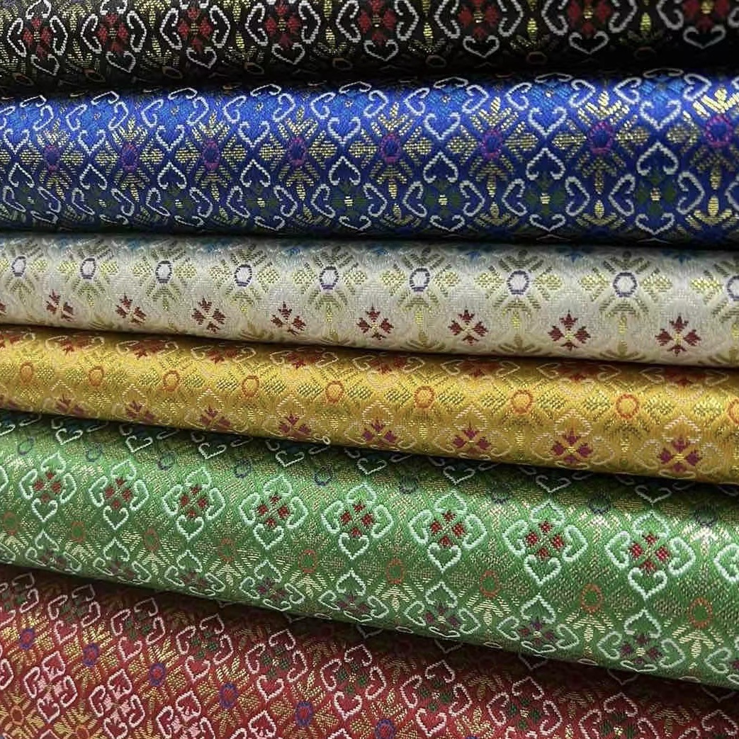 中国風の子供服モンゴルローブ映画やテレビの衣類生地装飾エッジングゴールドとシルバーのジャカード錦織シルク生地