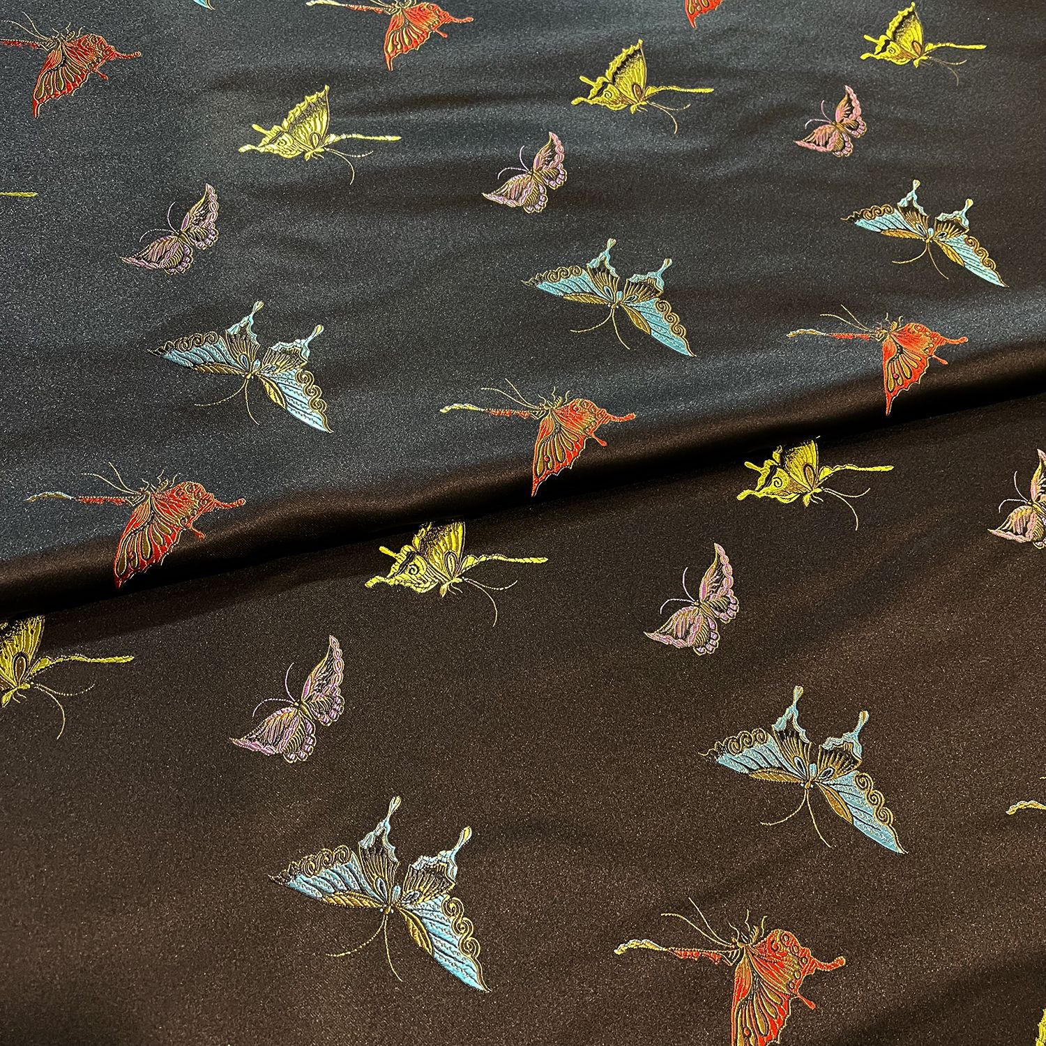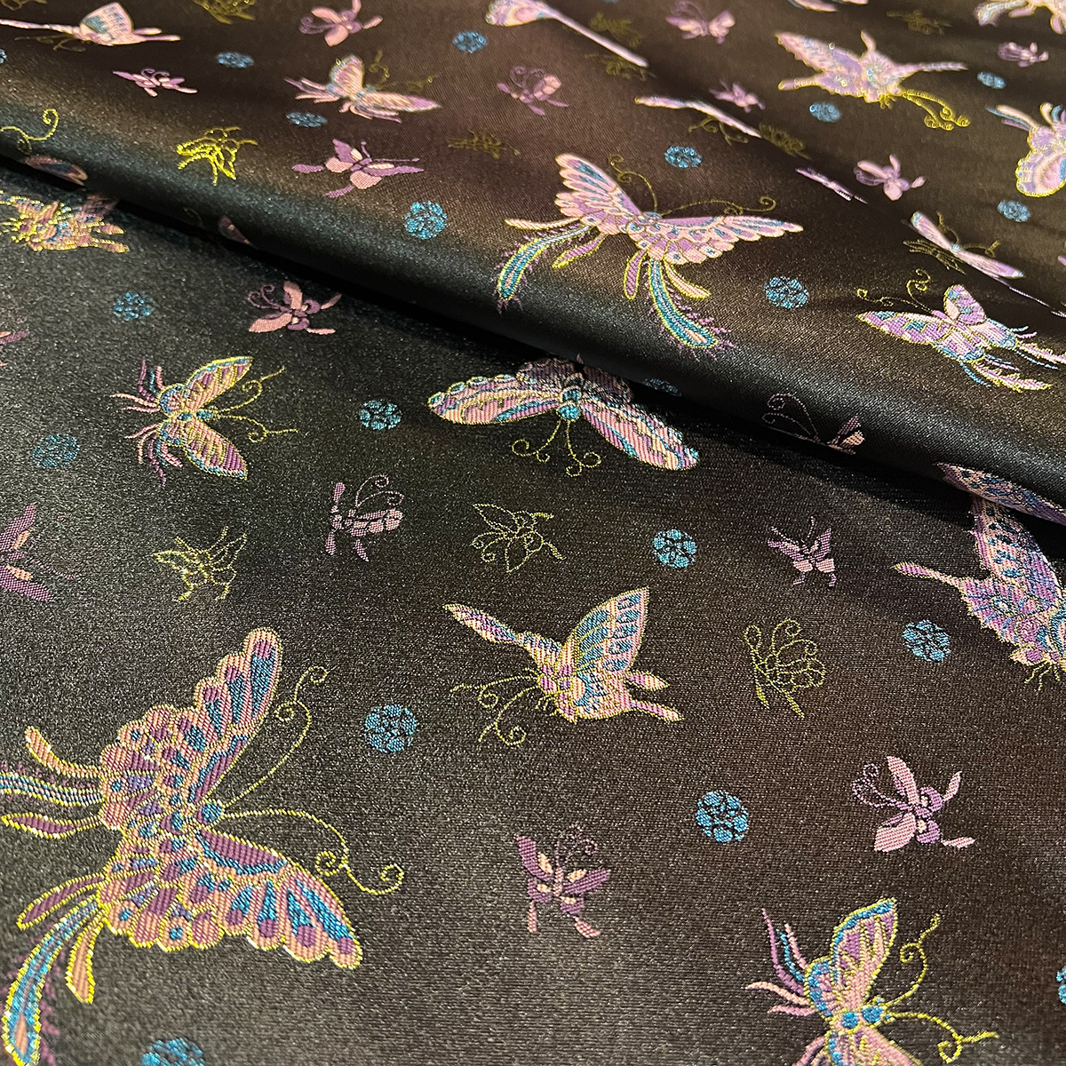 150黒の大きな蝶の新しい中国風の生地の女性の子供の馬の甲のチャイナドレスのワンピースの漢服の服の生地