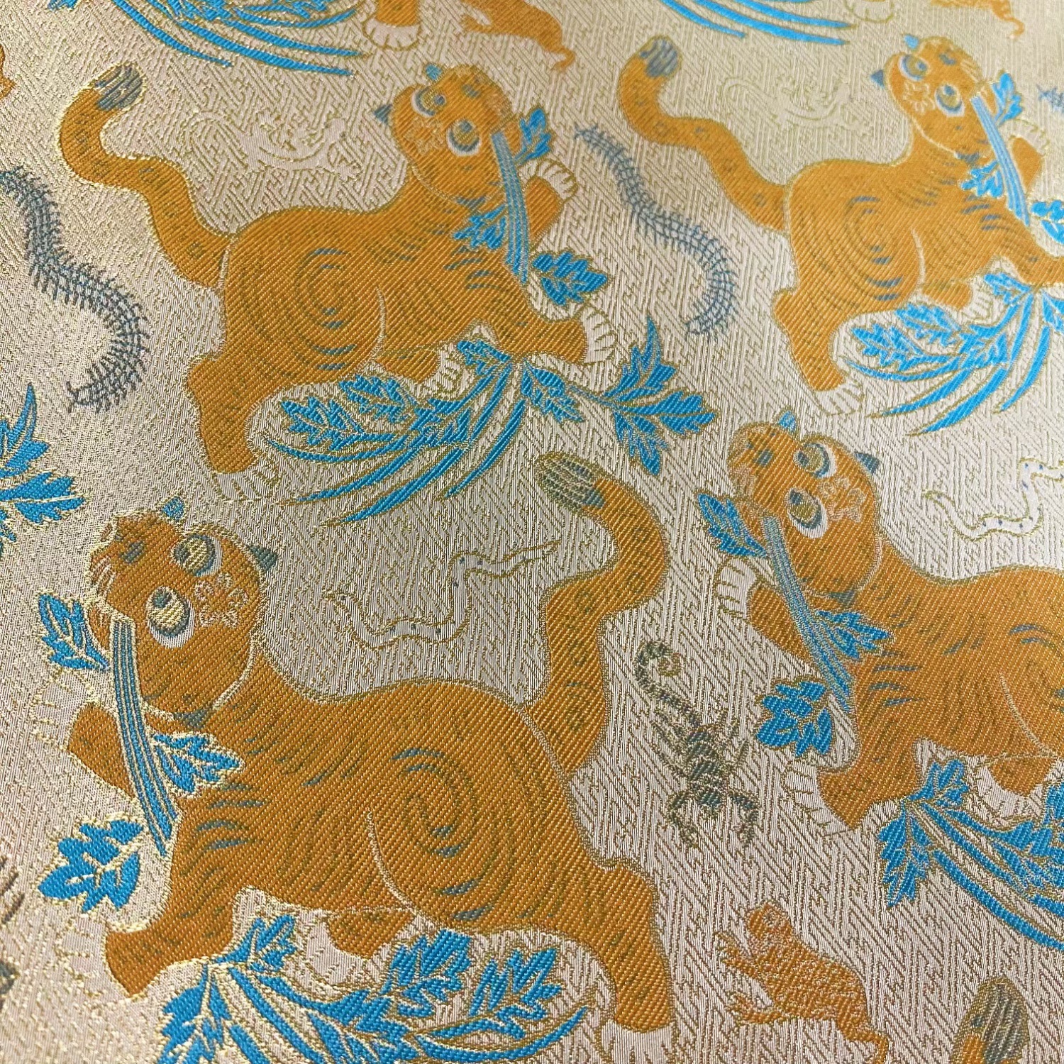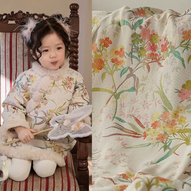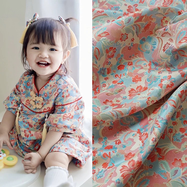 国風橘青衝突色花ジャカード色織り生地中国式服装唐装子供服バッグ手作り生地