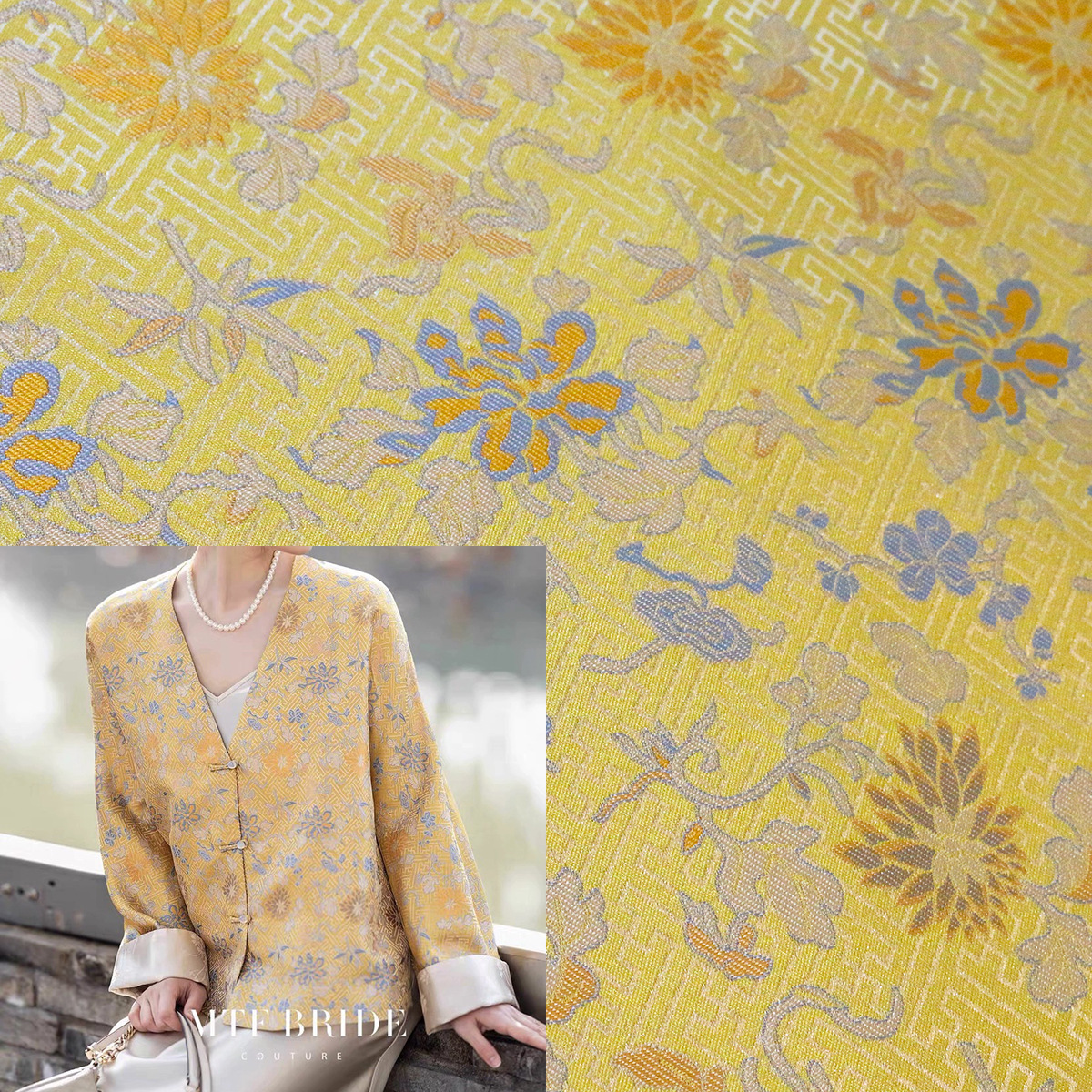 小黄花は宋錦新中国風生地の女性馬甲チャイナドレスのワンピース漢服の生地に似せています。