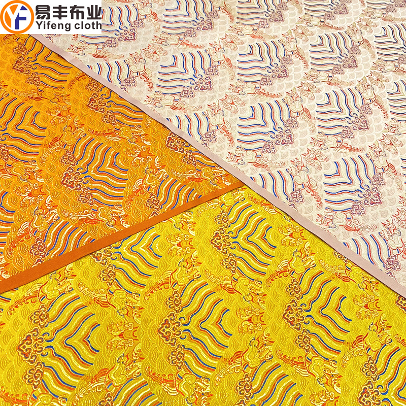 75織錦織波花高密度ナイロン生地中国風童装唐装チャイナドレス生地口金包絹織物