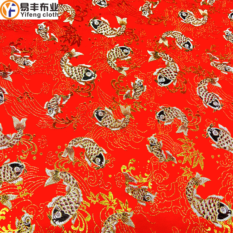 150鯉躍龍門織錦織模造シルク生地中国風服装布チャイナドレス中国式座布団diy手作り