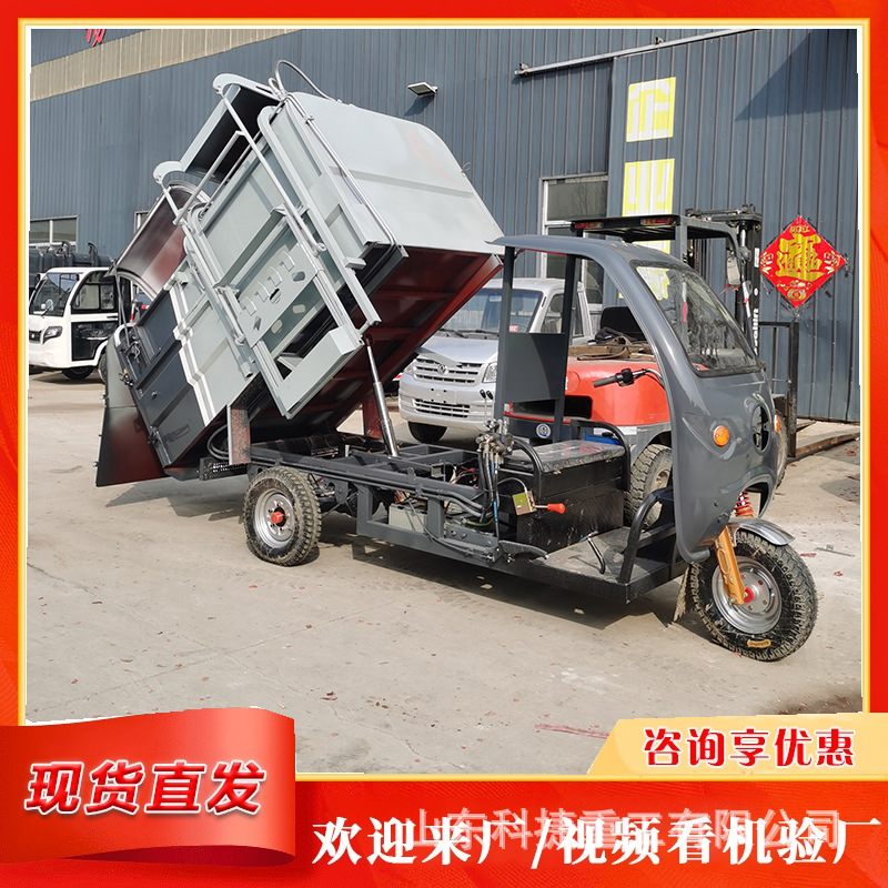 自装自卸ごみ輸送車5方全圧縮ごみ車電動ごみ車三輪側吊り桶清掃車