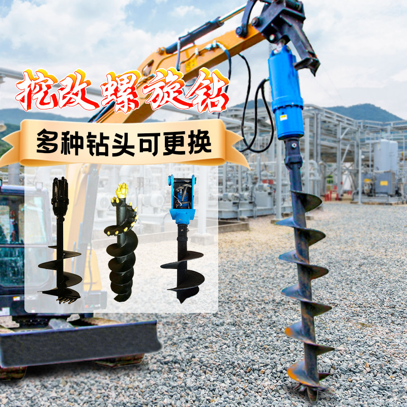 掘削機は螺旋を変えて木の穴の街灯の基礎を掘って杭を打ちます。