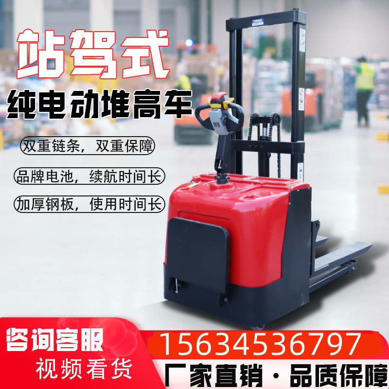 駅運転歩行式全電動フォークリフト1.5トン2トン積層車半自動荷役車油圧昇降積層機