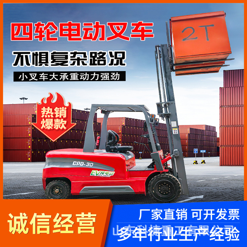 電動フォークリフト2トン四輪車昇降炉高倉庫積み下ろし3トン電動フォークリフト1トン小型パレット車