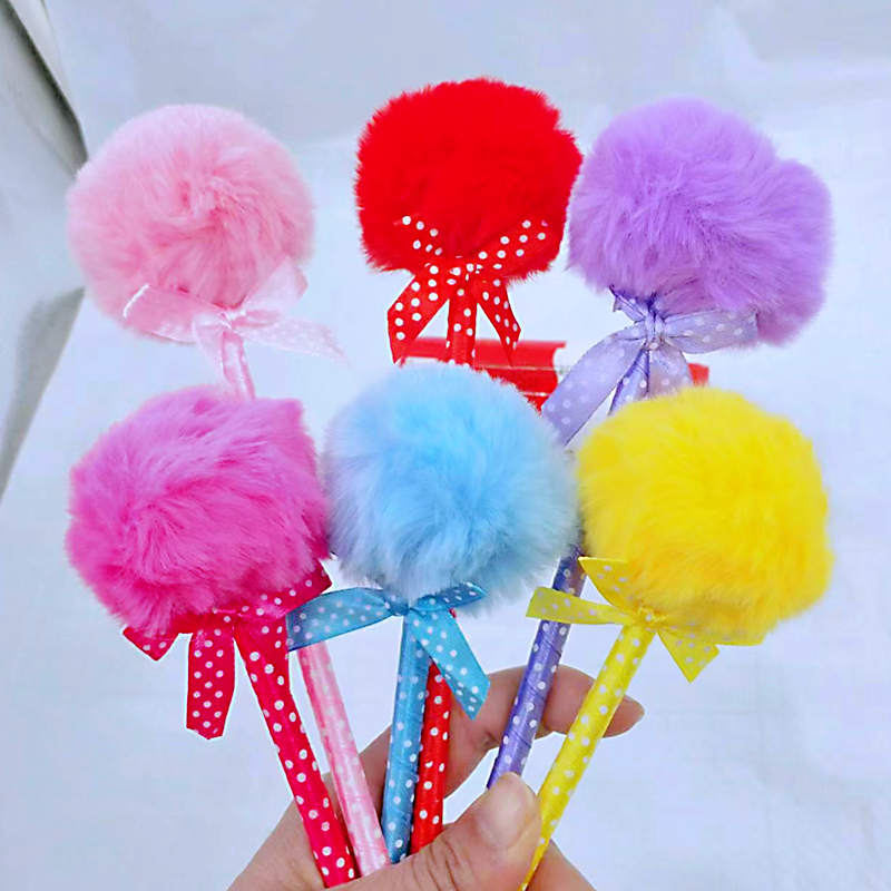 圣旦部族新商品可爱い蝶結びの毛のペンの少女の心のカラーの毛のボールのペンのボールペンの学生の赏品
