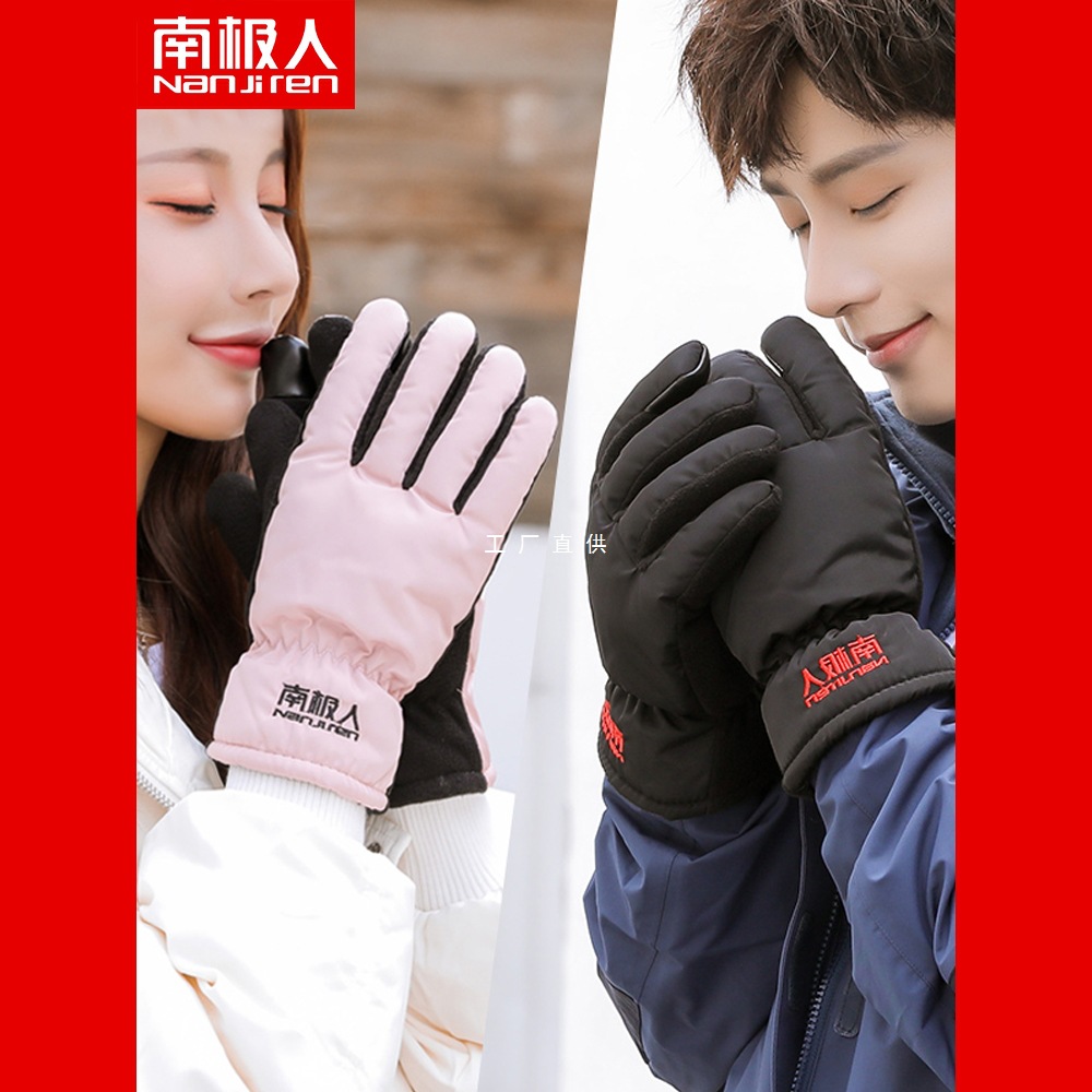 南極人冬スキー手袋男性保温厚いベルベットタッチパネル防寒バイク綿手袋女性