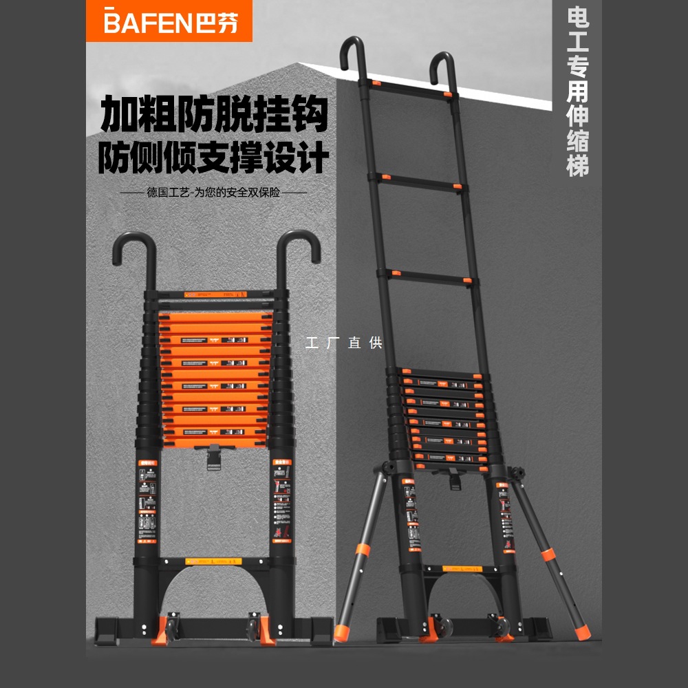 Baffin アルミ合金伸縮式家庭用はしご厚みのあるストレートはしごエンジニアリング折りたたみヘリンボーンはしご片面昇降フック付き