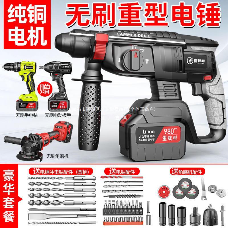 ブラシレスリチウム電気ハンマーコンクリート多機能リチウム電気衝撃ドリル重型無線充電電気三用