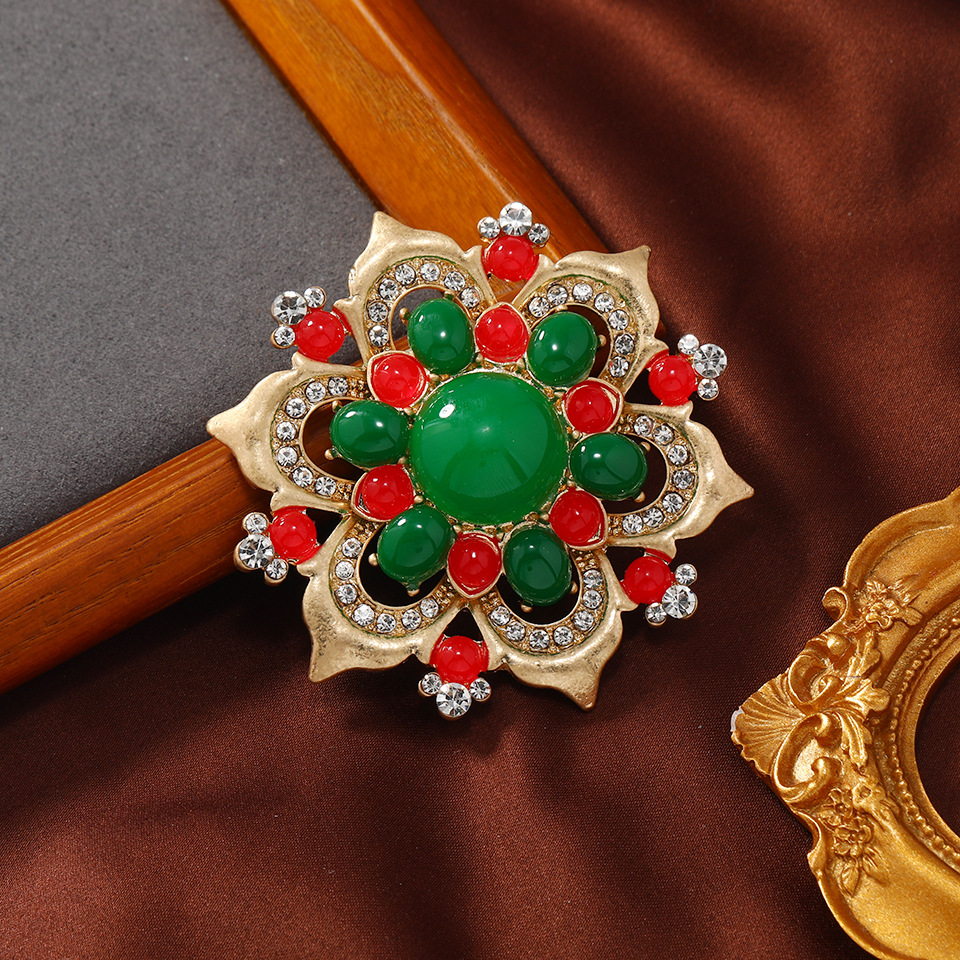 新品中古ヴィンテージ風禅蓮の花ドリルピン女性優雅レトロコート十字ブローチアクセサリー
