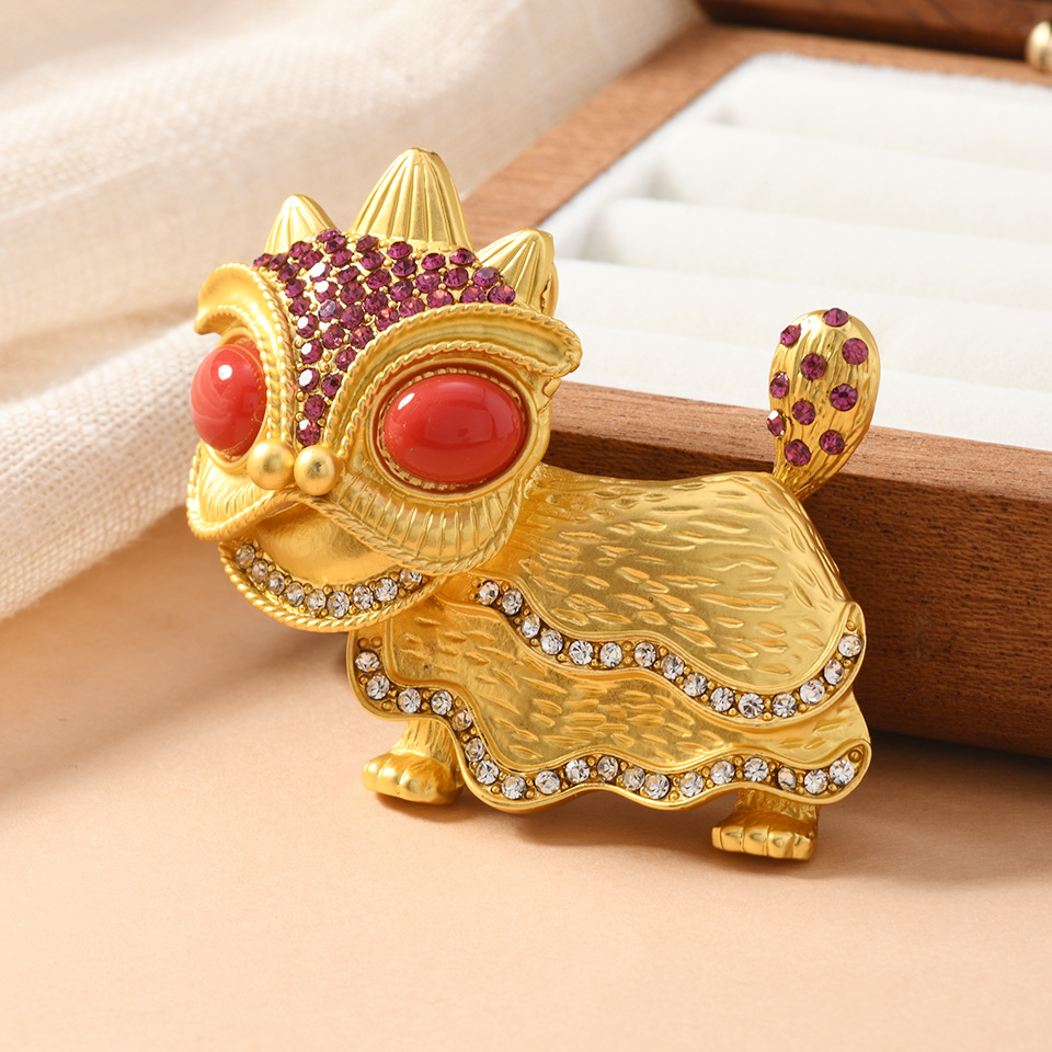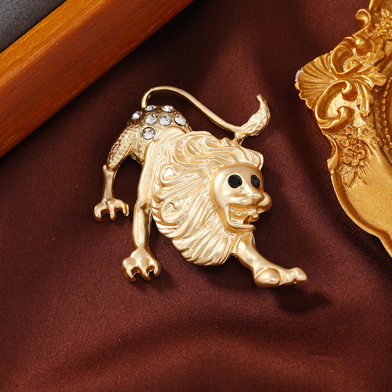 創意新作国風覚醒ライオンブローチ可愛いレトロ国潮動物ピンアクセサリーファッションライオン胸花プレゼント