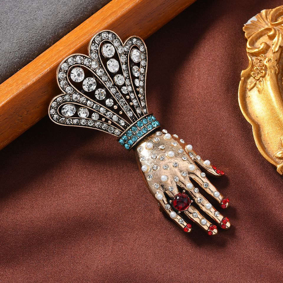 レトロな誇張のショーモデルのレースの美人の手のひらのブローチの立体の大きいサイズのドリルの胸の花のコートは女性のピンを飾ります。