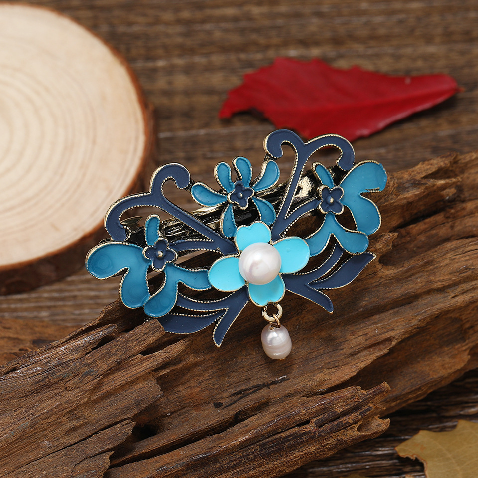 青い花のヘアピン景泰藍淡水玉流蘇超仙歩揺かんざし漢服時代劇の髪飾り